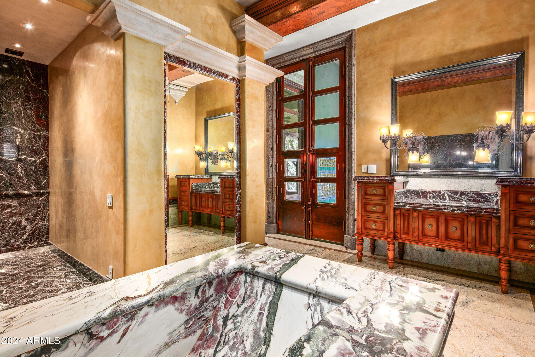 Transport yourself to a bygone era of grandeur with this luxurious 17,912 SF estate, set in the heart of Paradise Valley. Designed by world-renowned architect Juan Sandoval, this architectural masterpiece spans 2+ acres, featuring 5 opulent bedroom suites and 11 baths, each designed as a private retreat, featuring fireproof walls, wet bars, and exquisite finishes.